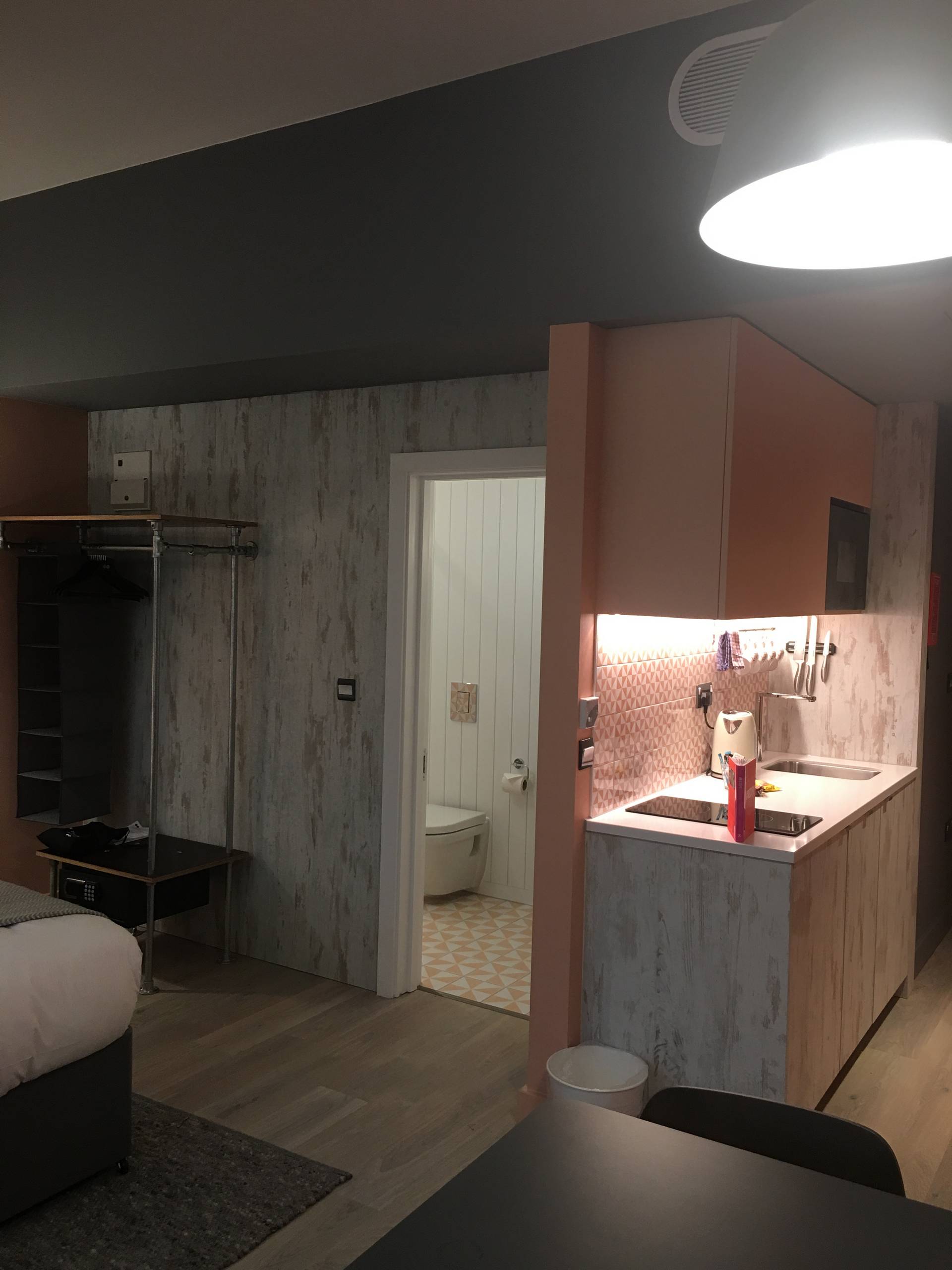 This ‘Apartment’ style hotel was entirely redesigned from a 1980’s office, to create 71 studio rooms complete with a kitchen area in each room. The modern functionality was combined with a stylish feel in each room as well as an open plan ground floor designed with lighting in mind to create intimate spaces.